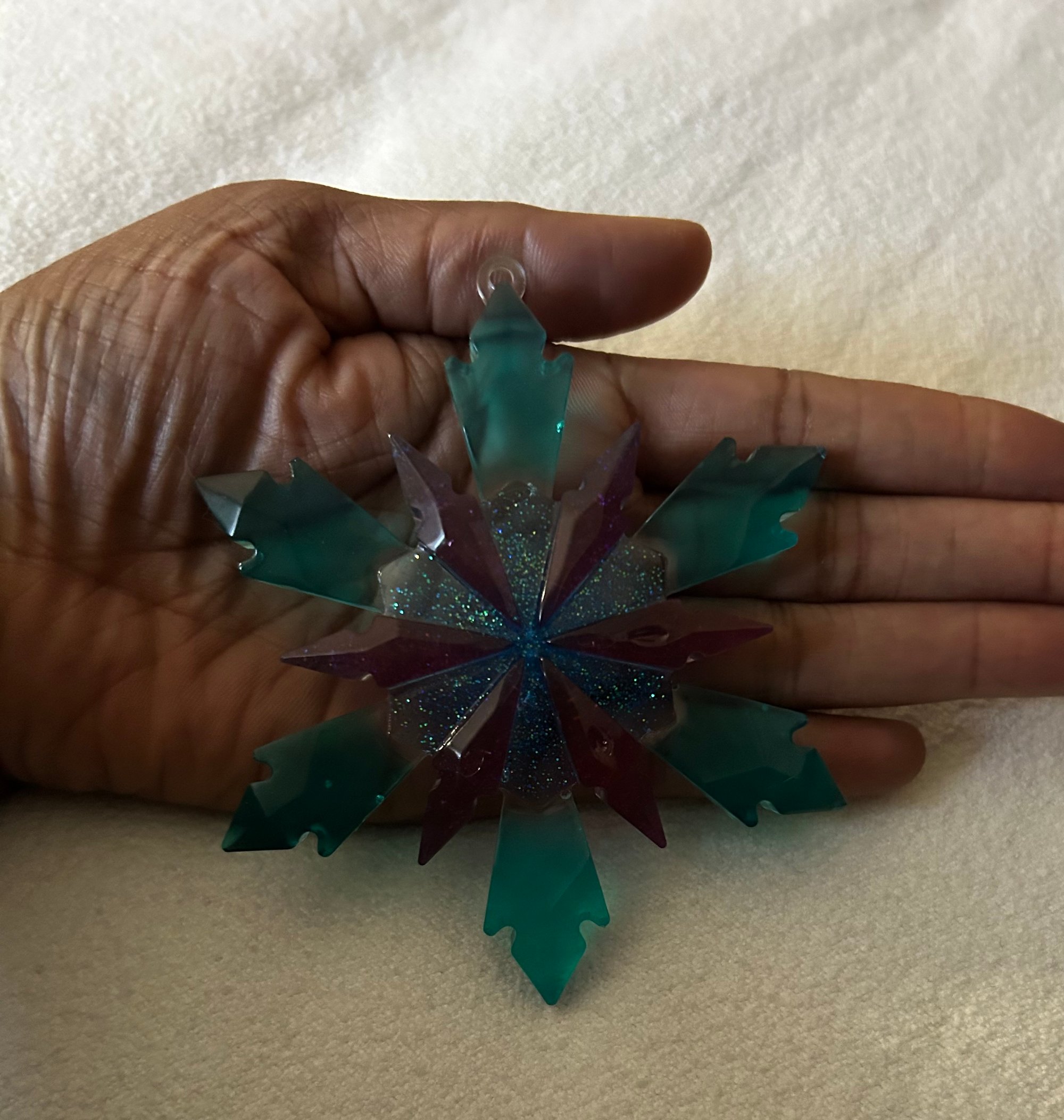 Handmade resin snowflakes. Set of 3. Can be customized as a different color. Please contact for more options.